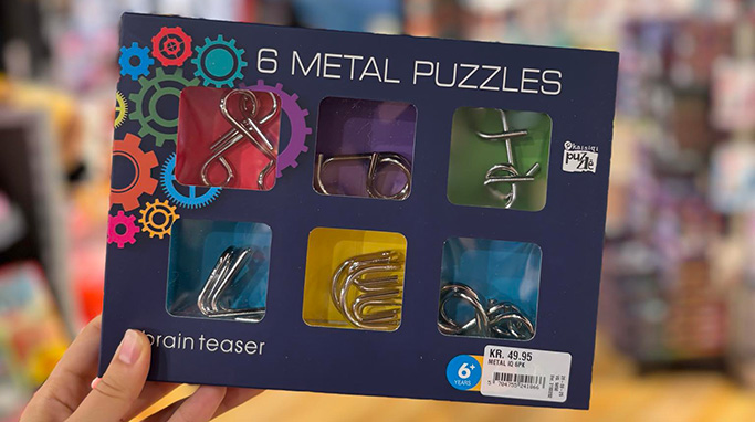 Hvis du vil give børnene en udfordrende og underholdende mandelgave, så er dette "6 metal puslespil" fra Bog & Ide - Legekæden et oplagt valg. Du finder udover dette også et bredt udvalg af mange andre slags puslespil I kan løse i fællesskab.