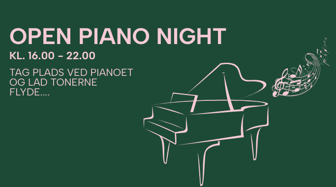 Du kan også komme forbi til Open Piano Night, hvor du kan tage plads ved klaveret og lad tonerne flyde. Alle er velkomne til at spille, synge – eller bare lytte med.